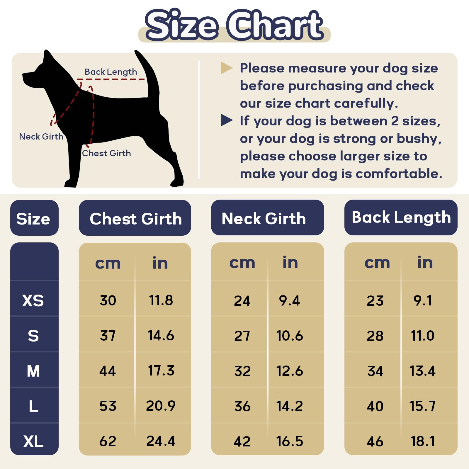 - 🎄【Tallas】Para que tu perro esté más cómodo, te recomendamos encarecidamente que midas cuidadosamente la circunferencia del pecho, la longitud de la espalda y la circunferencia del cuello de tu perro antes de realizar el pedido. A continuación, consulta nuestra propia tabla de tallas. Si tu perro está entre dos tallas, te sugerimos que elijas una talla más.