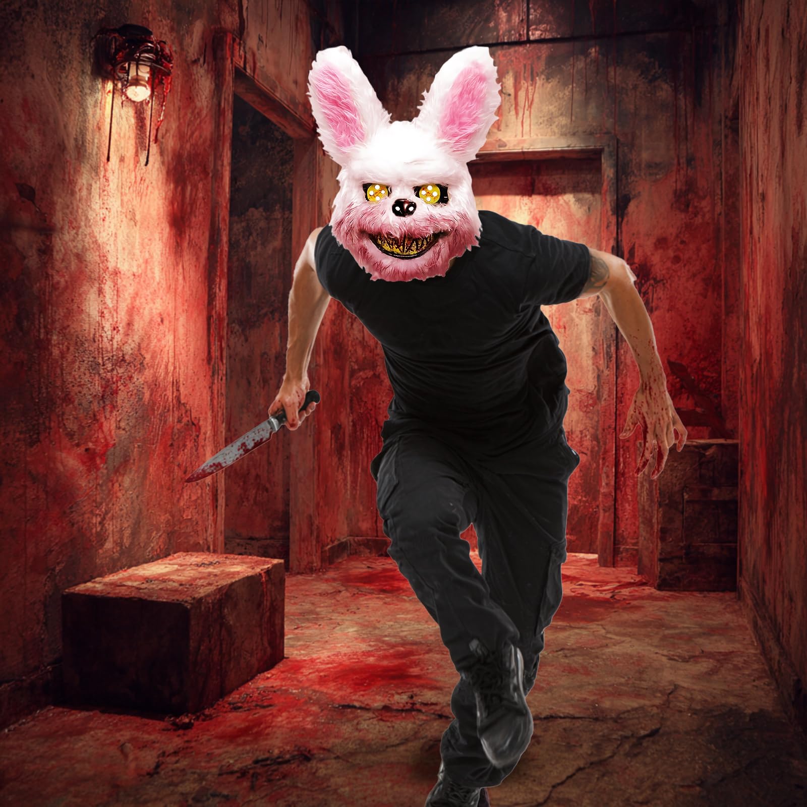 - 🐰👺【Al amplio espectro de aplicaciones】 ya sea para adultos o niños, este conejo de disfraces de Halloween es perfecto para fiestas de Halloween, eventos de cosplay, juegos de rol, bromas, fiestas de disfraces, frecuencias de escenario, Pascua, Navidad, Carnaval, etc., Sin maquillaje ni disfraces complicados, también puede crear el efecto de miedo a los vecinos. Creo que la forma del asesino de conejos llamará la atención en Halloween y en cualquier fiesta.