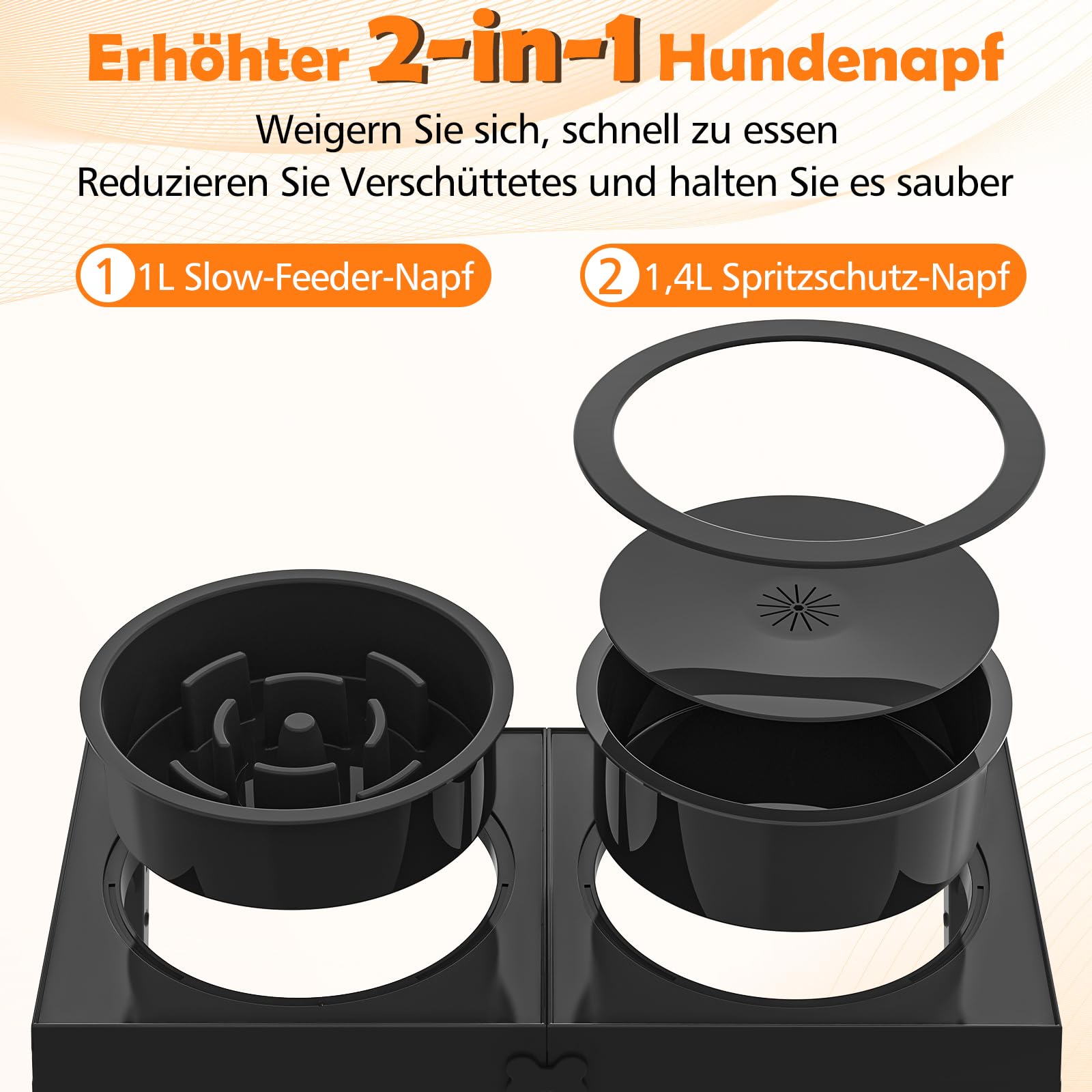 - 【Fácil de Limpiar y Desmontar】El soporte del comedero para perros se puede desmontar por completo, y cada parte se puede lavar por separado para evitar que los residuos de comida reproduzcan bacterias. Mantenga a su perro seguro, limpio y cómodo en cada comida. Se recomienda lavar el cuenco a prueba de salpicaduras y el cuenco de comida lenta dos veces por semana.