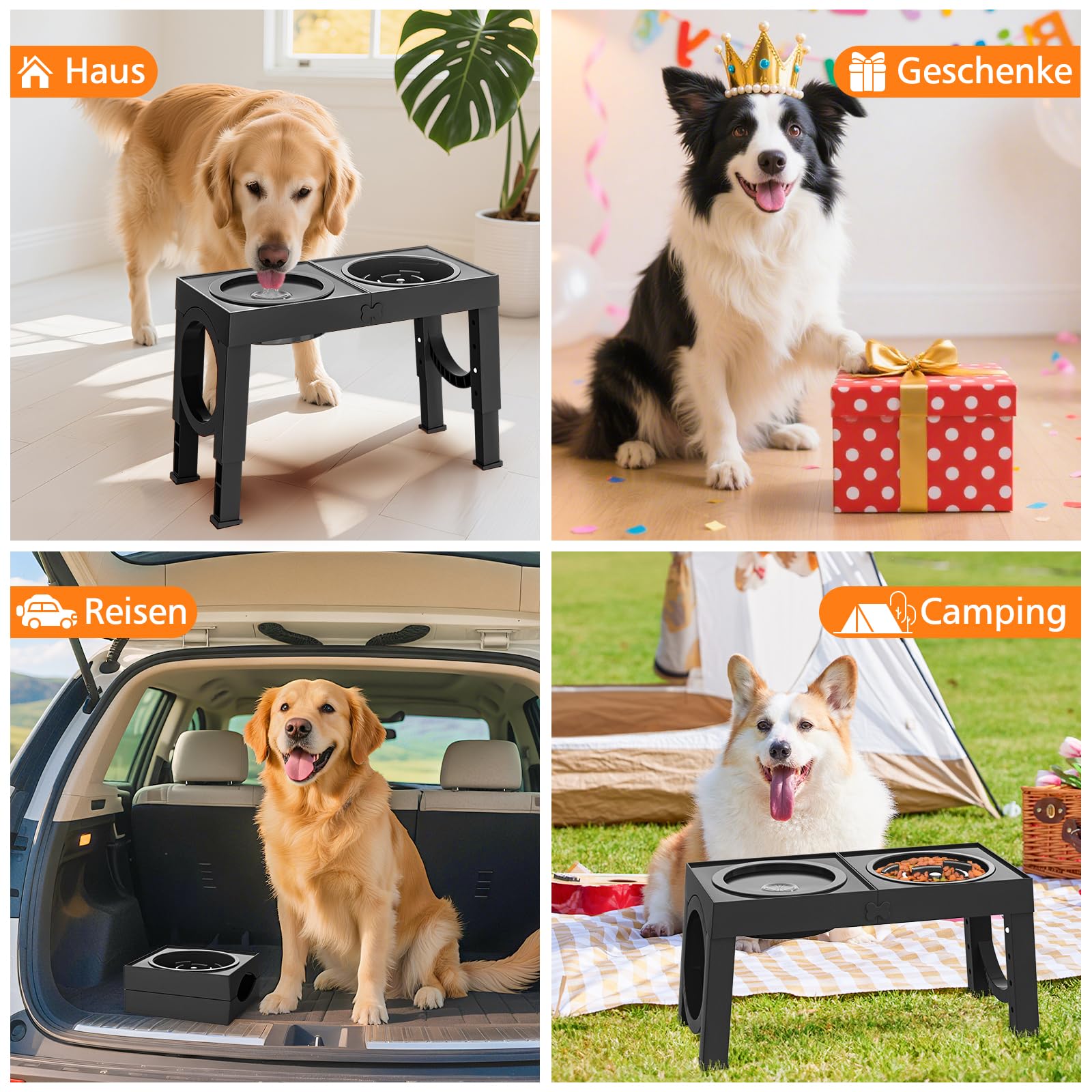 - 【5 Alturas Ajustables, diga Adiós a Agacharse】Este cuenco elevado para perros ofrece 5 ajustes precisos de altura (8CM/23CM/27CM/31CM/35CM), adaptándose perfectamente a diferentes tamaños de perros, desde Teddy hasta Golden Retriever pueden encontrar la altura más cómoda. La altura científica ayuda al perro a mantener una postura natural para comer, evitando la inclinación excesiva de la cabeza y reduciendo la fatiga mientras come. Tanto si es un cachorro, un adulto o un perro senior, encontrará la altura perfecta del soporte del comedero para que cada comida sea más fácil y saludable.