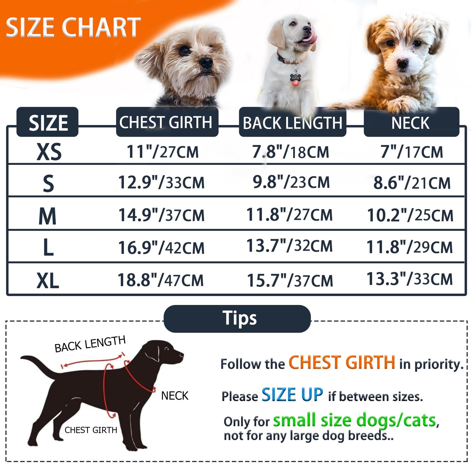 - Tamaños y medidas de la sudadera para perros: este cálido suéter de invierno para perros está disponible en 5 tamaños (XS, S, M, L, XL), nuestros suéteres para perros pequeños y medianos están diseñados para adaptarse a la mayoría de las razas, incluyendo Teddy, Chihuahua, Beagle, caniche, Bulldog, Yorkie, Sheltie, Fox Terrier, Pug, Dachshund en miniatura, Boston Terrier, Maltipoo y más. (Consulta la tabla de tallas para medir a tu perro antes de comprar, prefiere el tamaño del pecho)