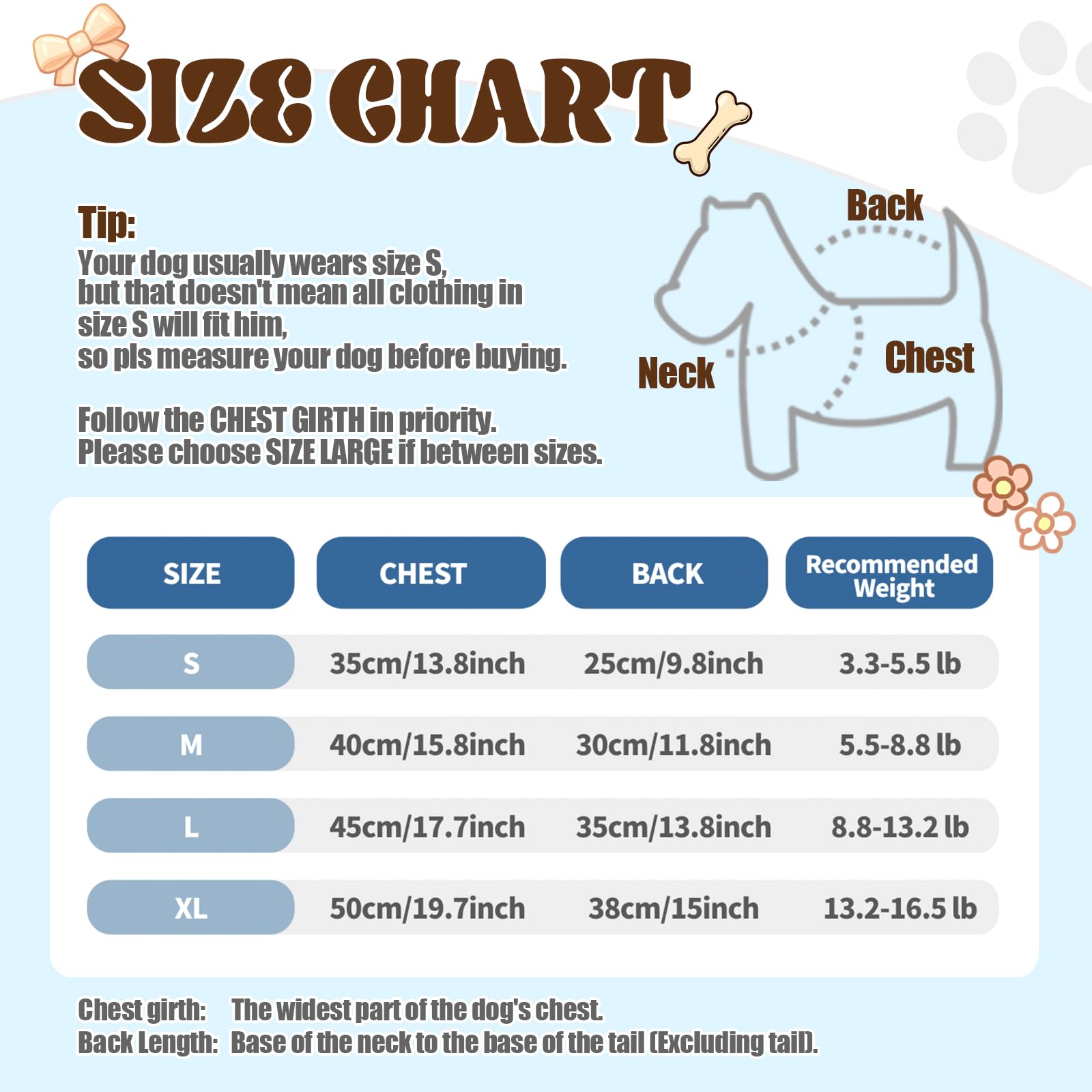 - Varios tamaños y ajuste perfecto para perros pequeños: disponible en S, M, L, XL, para perros de 3 a 16 libras (1.5 a 7.5 kg). Diseñado para razas pequeñas a medianas, incluyendo pomerania, maltés, caniche juguete, mini schnauzer, cachorro bulldog francés, bichón frise y más. Mide siempre el pecho y la espalda antes de realizar el pedido. Esta ropa para perros pequeños es ligera, elástica y garantiza un ajuste cómodo pero cómodo para mascotas activas.